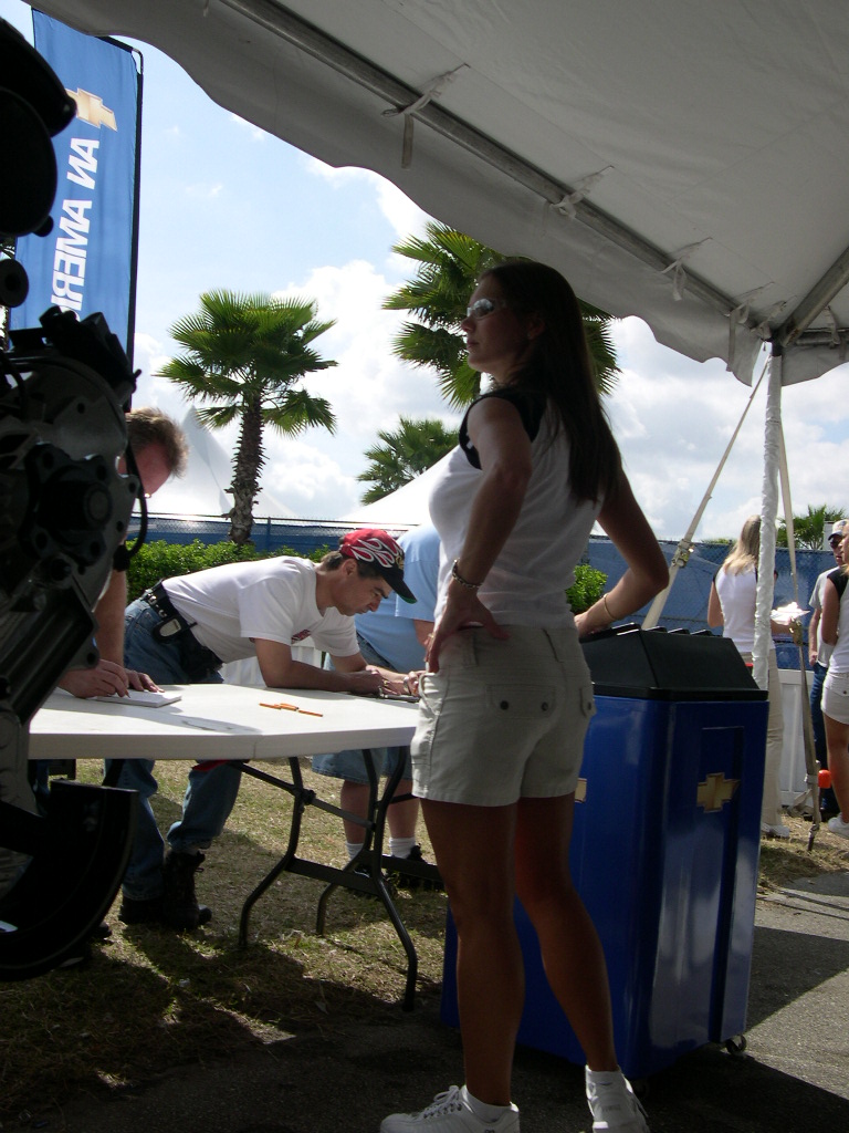 More pics from the vendor showcase at the speedway... note the two drunks test-sitting in the Russian bike/sidecar combo. Also note the cabbage patch t-shirt on the guy in the sidecar. Instant street cred despite the white color.