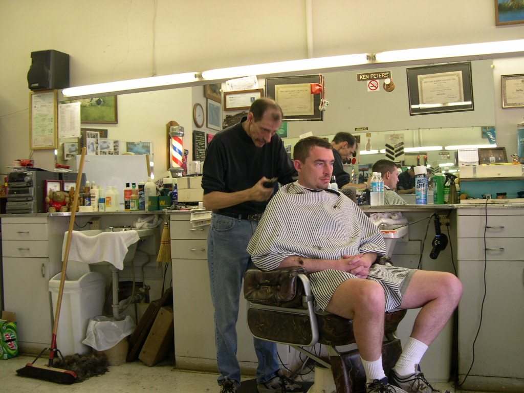 Later that day back to main street for a haircut and to look at more bikes. The barber shop is a very small almost-hole-in-the-wall type place that you'd walk right by on your way to the Boot Hill Saloon and not even see it tucked into one of the buildings. For $9, these guys will give you a trim AND a mechanical back massage. I wasn't crazy about the vibrating machine scrambling my brains, and the haircut frankly wasn't that good... but gleaning some wisdom from these guys was well worth the cost of tuition. Good peeps who have seen it all. Greg wasn't going to get a haircut at first, but decided on it. Not sure what he was contemplating in the pic. Meaning of life? Hot chick outside the window? Does it really matter?