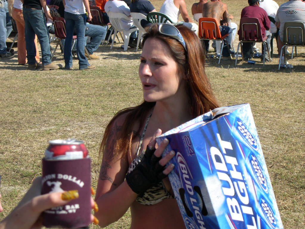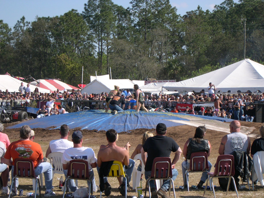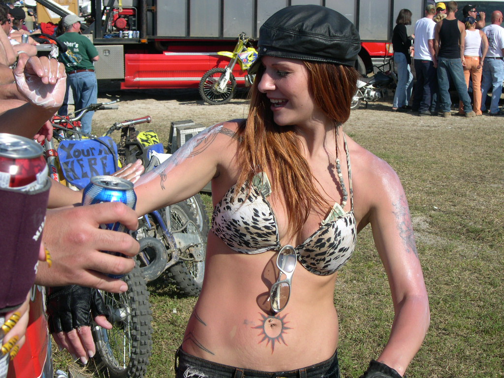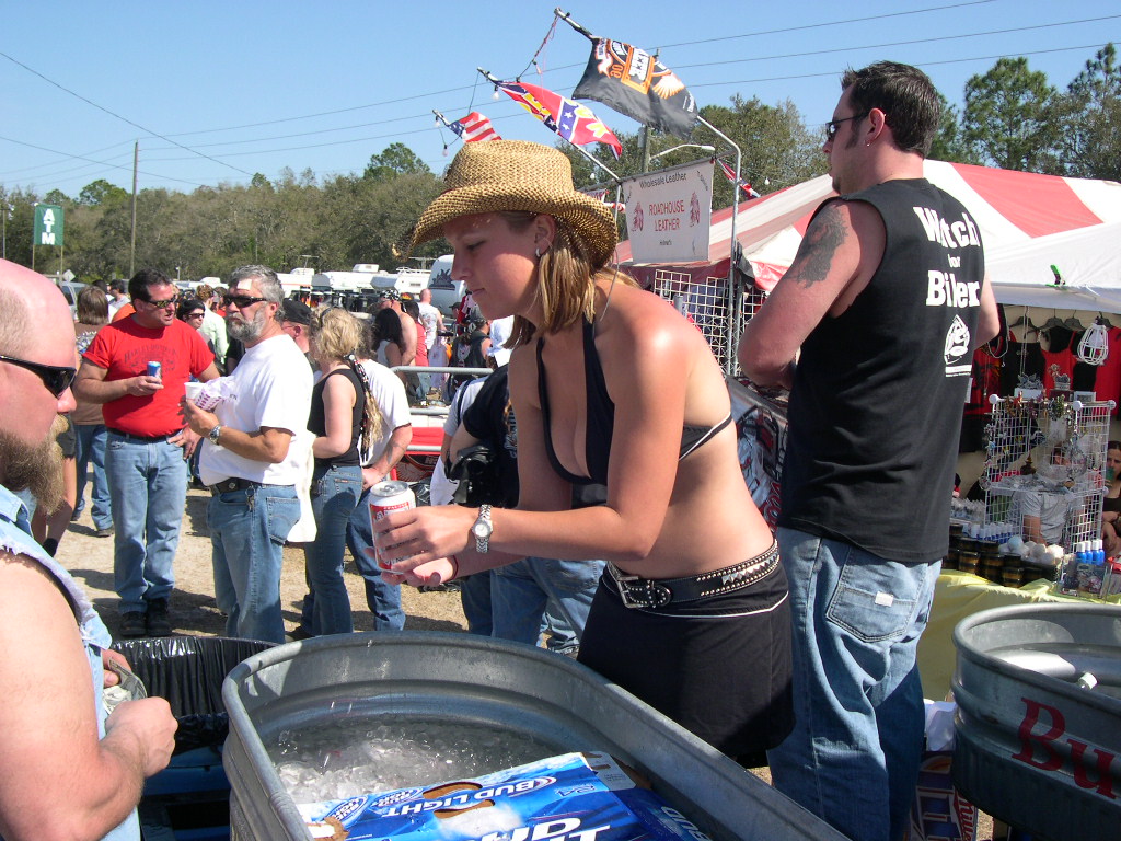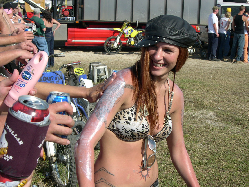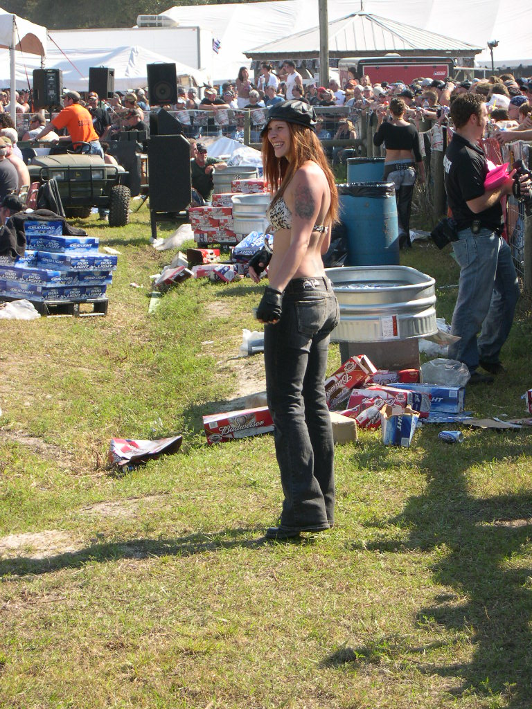 Wow, it's hard to believe another year is written on the pages of history already! Anyway, we left Raleigh at 0-dark-thirty Wednesday AM and made the 7+ hour trek to Daytona just in time to hit Sopotnick's Cabbage Patch. The Patch has never let us down before, and this year was no exception. In Daytona proper, ordinances are fairly strictly enforced.... but the Patch is out in the sticks of Volusia County. Yes, there's cops there, but they take more of a hands-off approach (probably because they don't want to start a riot of pissed-off drunken bikers!) You'll get a ticket for doing a burnout in the street... but not for flashing bewbs.